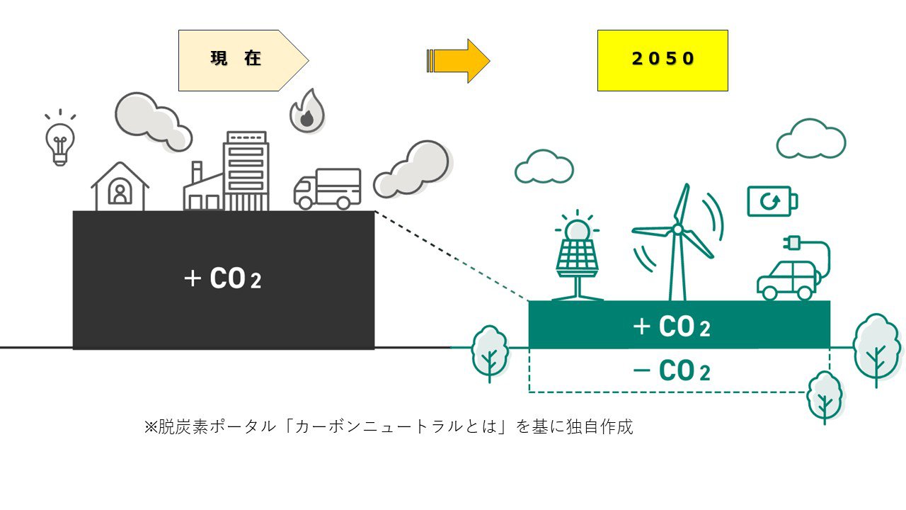 カーボンニュートラル とは、二酸化炭素など温室効果ガスの排出量と吸収量を均衡させ、その排出量を「実質ゼロ」に抑えることです